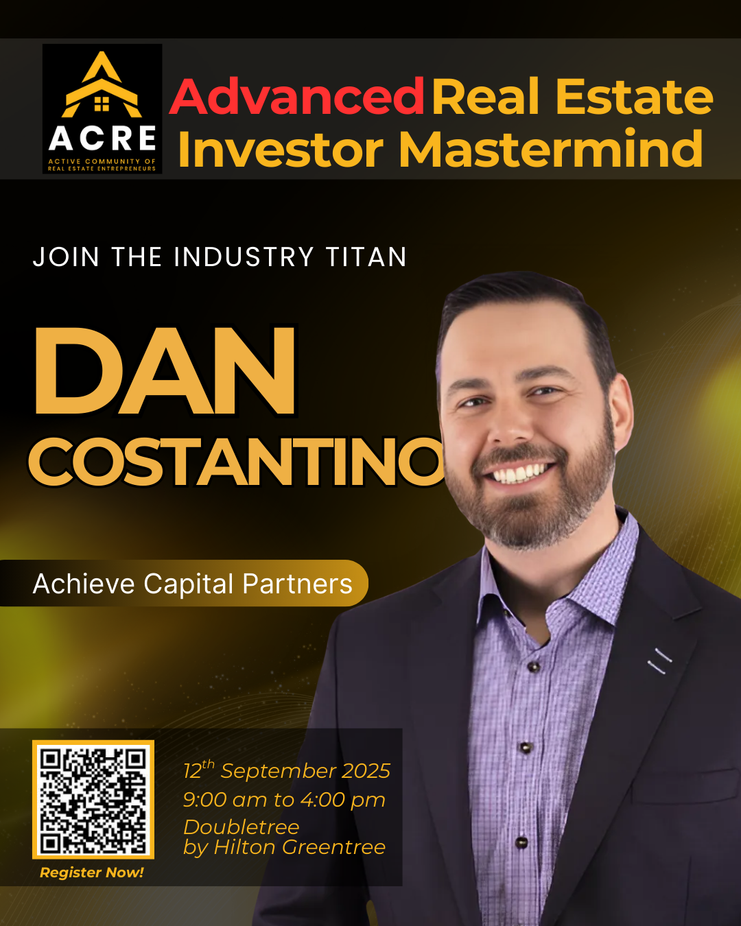 I will be at the ACRE Mastermind to mix it up with other 7 and 8 figure real estate investors. We will be sharing how we got to where we are, and helping fellow investors break through what's holding them back. Join us September 12th!